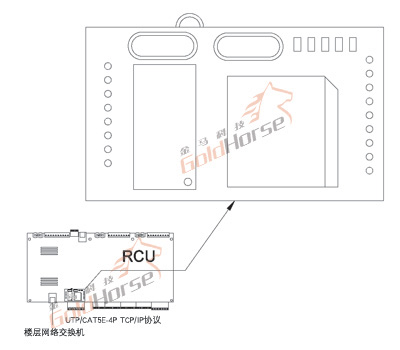 以太網(wǎng)聯(lián)網(wǎng)接口模塊,采用可插拔式結(jié)構(gòu)安裝于RCU上,在以太網(wǎng)(全T)型網(wǎng)絡(luò)結(jié)構(gòu)中使用。在此網(wǎng)絡(luò)結(jié)構(gòu)中,每個樓層的各RCU均有自己的IP地址,并采用“星型”型結(jié)構(gòu)通過標(biāo)準(zhǔn)網(wǎng)絡(luò)線接入本層網(wǎng)絡(luò)交換機(jī)。布線簡易,維護(hù)方便。