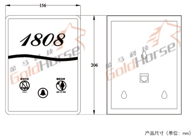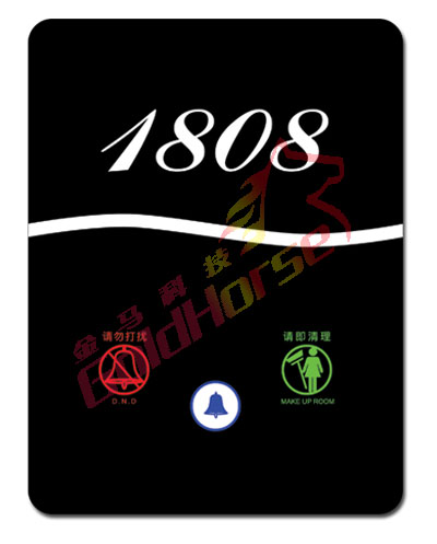 GHD-R02帶房號(hào)四合一門外顯示器置于客房門口,可定制房間號(hào),并以圖標(biāo)加中英文的形式顯示“請(qǐng)勿打擾”、“請(qǐng)即清理”狀態(tài)。 其中“有/無人”狀態(tài)通過門鈴按鍵隱含顯示。門外顯示器的顏色和外觀也可以根據(jù)酒店方要求進(jìn)行定制。
