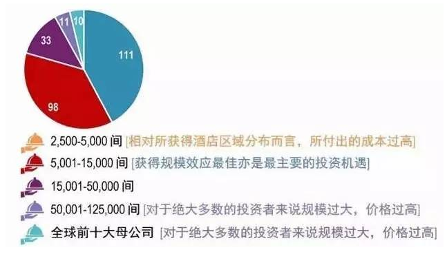 对于拥有5000-15000间客房的全球酒店品牌来说,整合交易或将提供最大的商机和规模效益。 从经济型酒店到豪华酒店,全球约有100家此类酒店品牌母公司,提供了大量的整合机会。